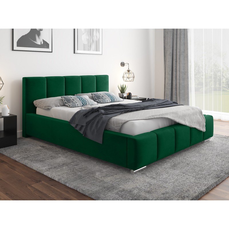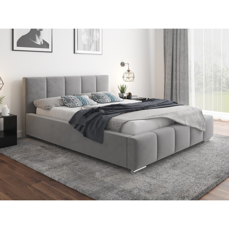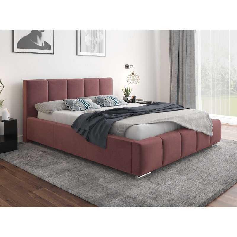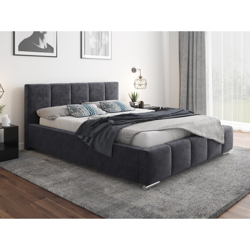 Nowoczesne łóżko o ponadczasowym wyglądzie, dostępna bogata paleta barw z których można wybrać ten materiał, który najlepiej wpasuje się w wygląd wnętrza sypialni. Stylowe łóżko Laura wyposażone jest w eleganckie zagłowie tapicerowane, stelaż pod materac oraz pojemnik na pościel.