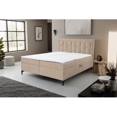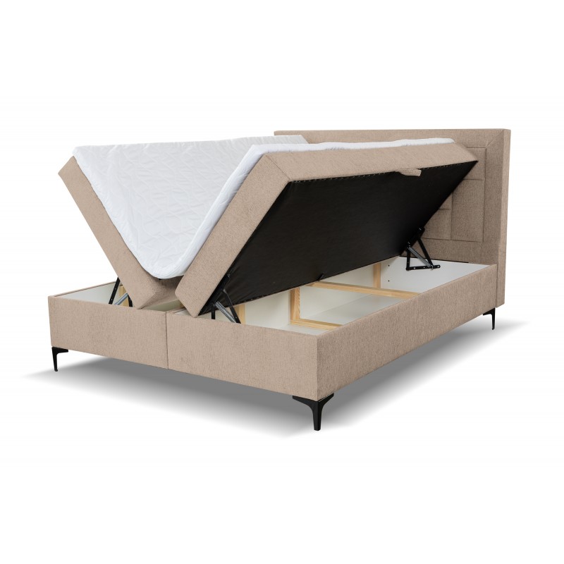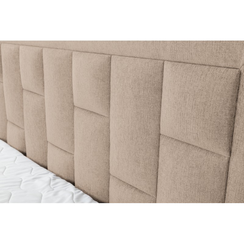 Eleganckie łóżko kontynentalne z przeżyciami na wezgłowiu 140x200 to idealny mebel niemal do każdej sypialni, które cieszą się dużą popularnością. Wysokiej jakości materiały z jakich zostało wykonane łóżko pozwoli na długi i spokojny sen każdego dnia. Wysokie wezgłowie jest bardzo wygodne i miękkie, stabilne oparcie pozwoli na wieczorne oglądanie lub czytanie książki. Łóżko kontynentalne posiada materac główny wykonany z sprężyny typu bonell i wysoce elastycznej pianki, dodatkowo w zestawie materac nawierzchniowy topeer aby podnieś komfort podczas użytkowania. Tapicerowane łóżko wyposażone w dwa pojemniki na pościel z automatami ułatwionymi podnoszenie w łatwy sposób.