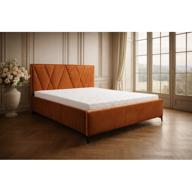 Praktyczne łóżko do sypialni Medra to idealny model który odpowiada aktualnym trendom w meblarstwie. Wygodne oparcie jest wysokie i miękkie, zapewni stabilne oparcie dla pleców podczas czytania książki. Stabilna konstrukcja łóżka stoi na wysokim poziomie aby codzienne korzystanie sprawiało trudności. Tapicerowane łóżko posiada w zestawie spory pojemnik na pościel wyposażony w siłowniki gazowe do swobodnego podnoszenia, stelaż metalowy z drewnianymi listwami.