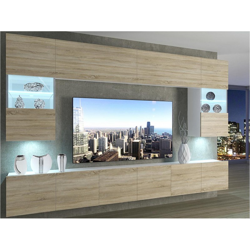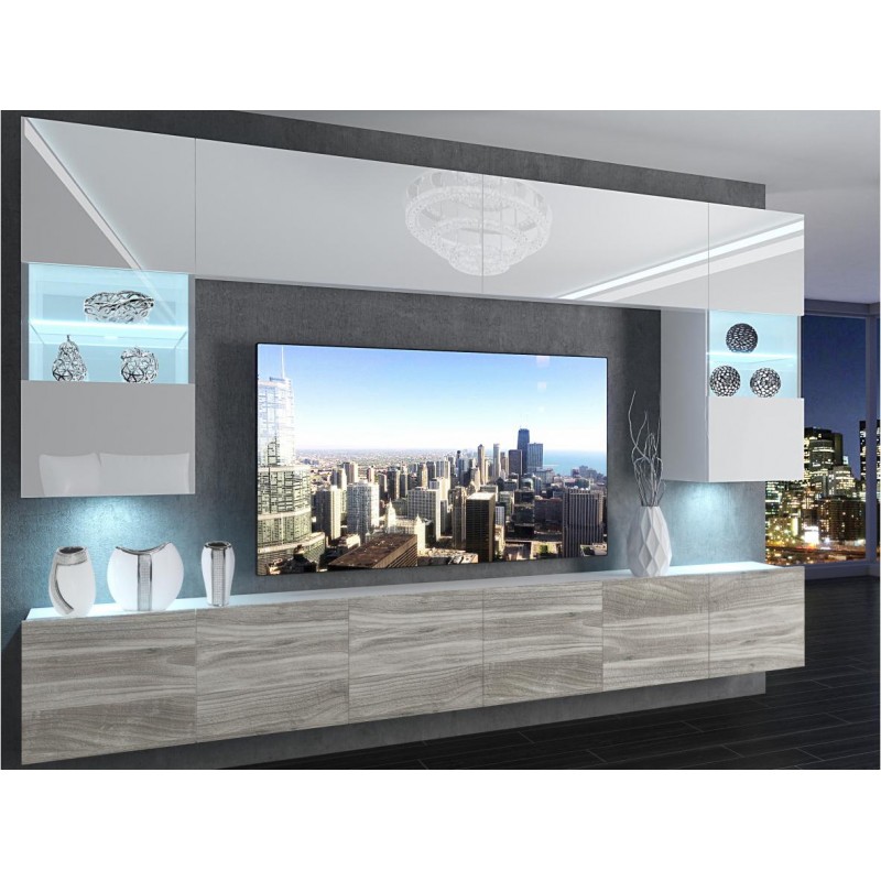 Całość meblościanki do salonu została zaprojektowana tak, aby każdy element współgrał w idealnej harmonii, tworząc spójną kompozycję, która doskonale wpisze się w nowoczesne aranżacje wnętrz. Produkt dostępny jest w różnych wzorach, co pozwala na indywidualne dopasowanie zestawu do stylu i charakteru Twojego domu. Wybierając ten mebel, inwestujesz w rozwiązanie, które nie tylko zaspokoi potrzeby funkcjonalne, ale również podkreśli prestiż i elegancję Twojego salonu, stając się centralnym punktem całej przestrzeni. Dzięki starannie dobranym materiałom, precyzyjnym rozwiązaniom konstrukcyjnym i możliwości wyboru dodatkowych opcji oświetlenia, elegancka meblościanka PREMIUM jest gwarancją satysfakcji i nowoczesnego stylu, który z pewnością zachwyci wszystkich gości odwiedzających Twoje wnętrze.