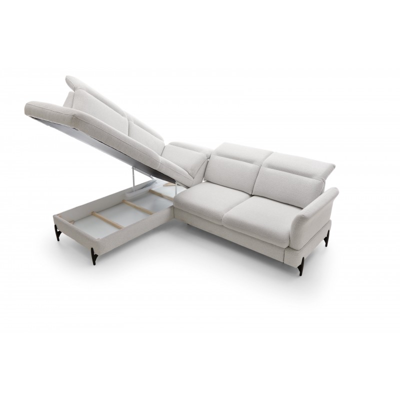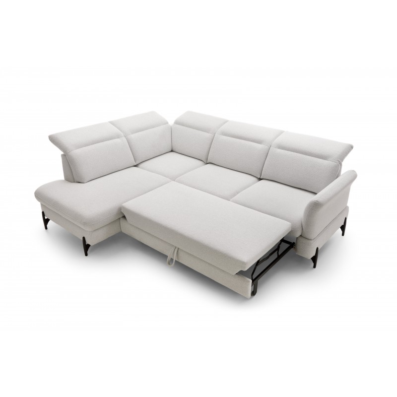 Nowoczesny narożnik Syntia II to połączenie stylu, wygody i funkcjonalności. Wyposażony w funkcję spania, pojemnik na pościel oraz regulowane zagłówki, zapewnia maksymalny komfort codziennego użytkowania. Solidna konstrukcja i elegancka tapicerka gwarantują trwałość i wyjątkowy wygląd przez lata. Idealny wybór do salonu lub pokoju dziennego – narożnik, który łączy nowoczesny design z praktycznymi rozwiązaniami.