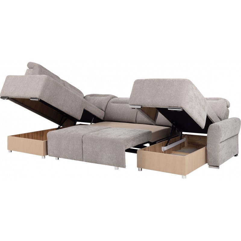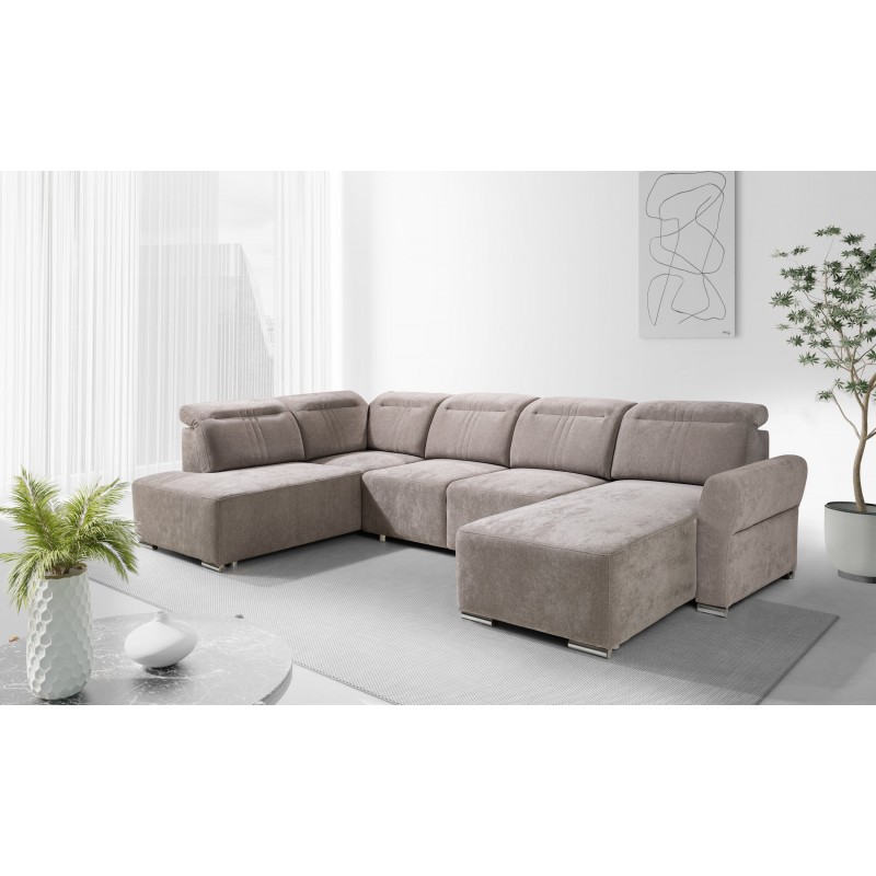 Narożnik WOCA I to nowoczesny, tapicerowany mebel w kształcie litery U, który łączy elegancję z funkcjonalnością. Wyposażony w funkcję spania, pojemnik na pościel oraz regulowane zagłówki, zapewnia maksymalny komfort użytkowania. Jego duża powierzchnia siedziska sprawia, że doskonale sprawdzi się w przestronnym salonie jako miejsce do odpoczynku i spotkań z bliskimi. Solidne wykonanie i nowoczesny design gwarantują trwałość oraz stylowy wygląd na lata. WOCA I to idealne połączenie wygody, jakości i nowoczesności.