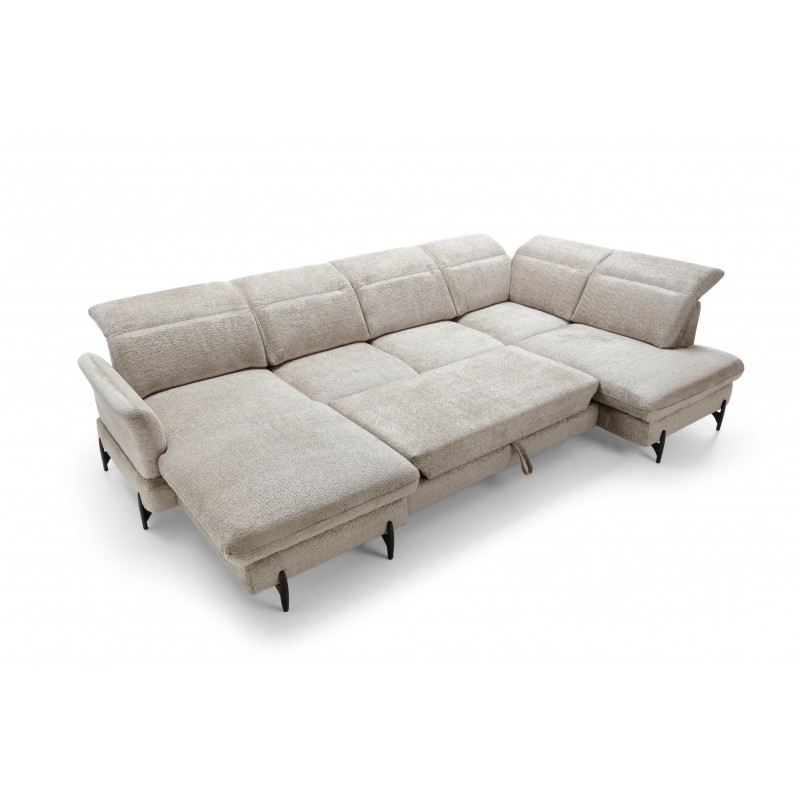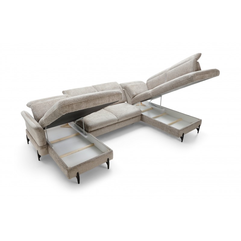 Narożnik SYNTIA I to elegancki i funkcjonalny narożnik w kształcie litery U, który łączy nowoczesny design z wygodą codziennego użytkowania. Wyposażony w funkcję spania, pojemniki na pościel oraz regulowane zagłówki, zapewnia komfortowy wypoczynek i praktyczne rozwiązania w salonie. Solidna konstrukcja i trwała tapicerka gwarantują długowieczność mebla, a jego przestronne siedzisko umożliwia relaks całej rodziny. SYNTIA I to idealny wybór dla osób ceniących styl, wygodę i funkcjonalność w nowoczesnym wnętrzu.