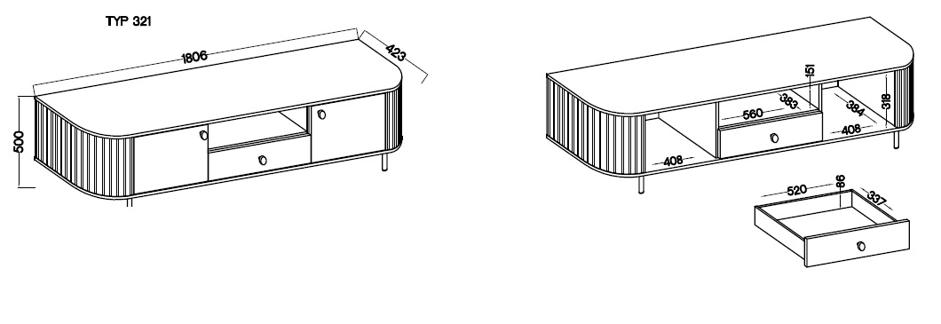 - szafka rtv to niezbędny element w każdym salonie i pokoju gościnnym, posiada szeroki blat na którym można swobodnie zainstalować telewizor oraz sprzęt multimedialny.